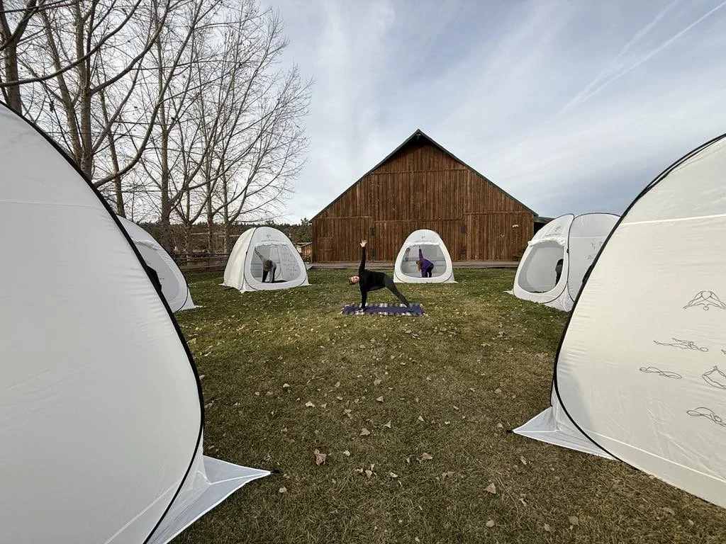 Mel – Owner and lead instructor at Mellness, a yoga and wellness studio in Sisters, Oregon. Mel leads all guided stretch sessions, mellow morning flow, balance and stability training, individual assisted recovery stretches, the Glow & Let Go Fire Ceremony, and the guided meditation and sound bath. Her work is grounded in nervous system regulation, mobility, and beginner-friendly movement.